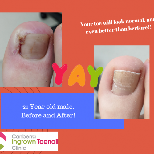 This young chap had been suffering for AGES with his painful Ingrown Toenail and we are pleased to present the finished product… Ta da! It will take another 6 months for the traumatised nail plate to completely grow out and look better than ‘normal’ again. If you are embarrassed about